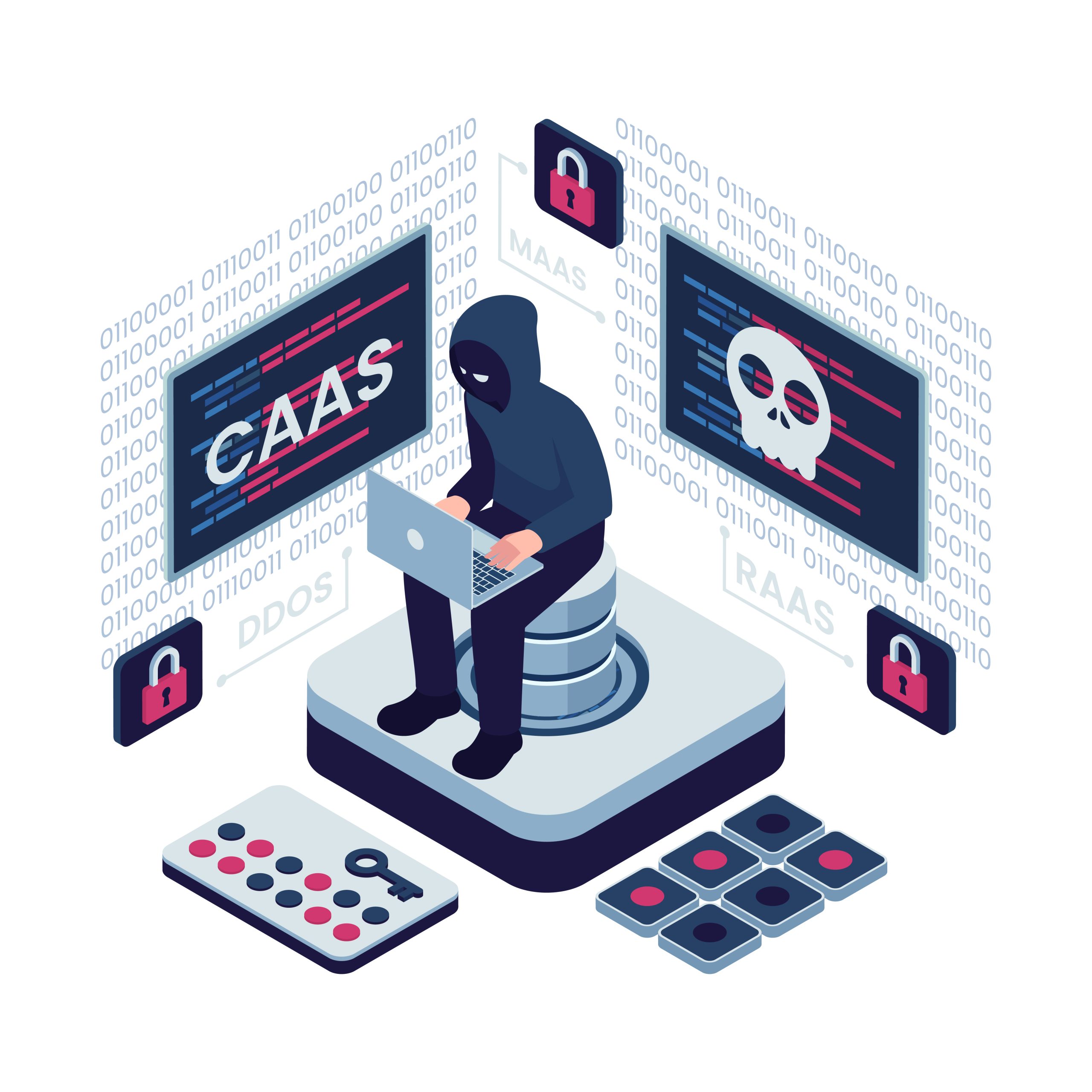 Isometric Cybercrime as a Service CaaS with Hacker and Threats